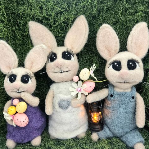 Nålefiltet I ren ull. Ca. 25 cm høye. Prisen er for begge to inkl. lyslykt.