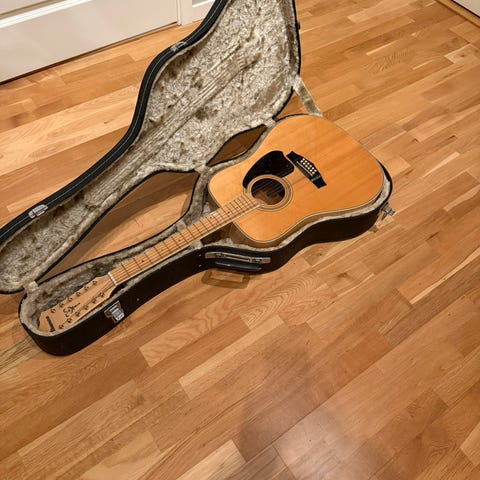 Gitaren har en naturlig trefinish (lønn) en cutaway-design for lettere tilgang til de høyere båndene.