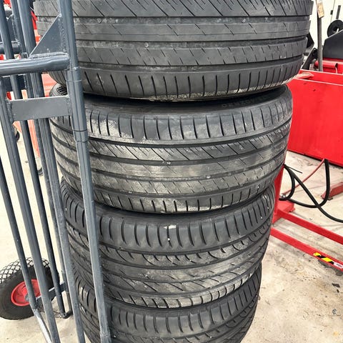 Dekkmønster er målt og avbildet i annonse, samme med produksjonsdato.