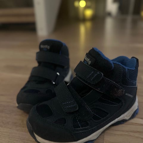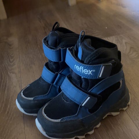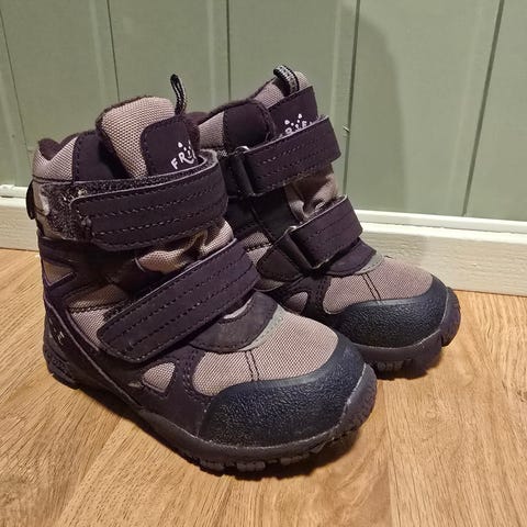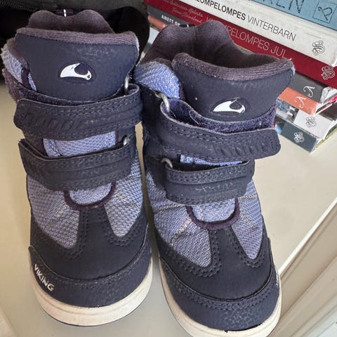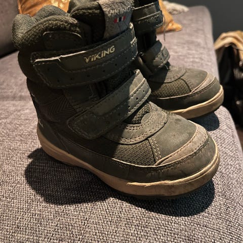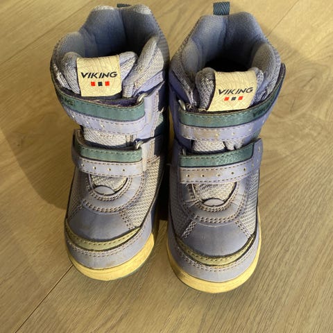 Viking vintersko i størrelse 25. Skoene har en solid såle med godt grep og borrelås for enkel justering. Selv om skoene er synlig brukt, er de ikke spesielt slitt, og det er mye bruk igjen.