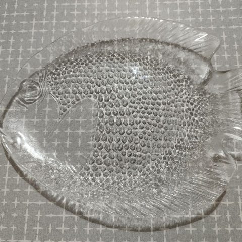 Sett med fiskefat fra Franske Arcoroc. Fra serien Poisson. Alle delene er i utmerket stand, ingen skader. Retro fra ca 70-80-tallet.