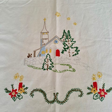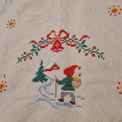 Nydelig håndsydd juleduk i klassisk julepreg. Perfekt til spisebord, sofabord eller skjenk og gir en lun og stemningsfull julestemning i hjemmet 🎄