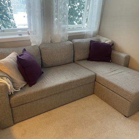 1-seters sovesofa fra IKEA ønskes solgt. Den er knapt brukt til hverken å sitte eller å sove i, og nå ønsker jeg å bruke plassen den står på til noe annet.