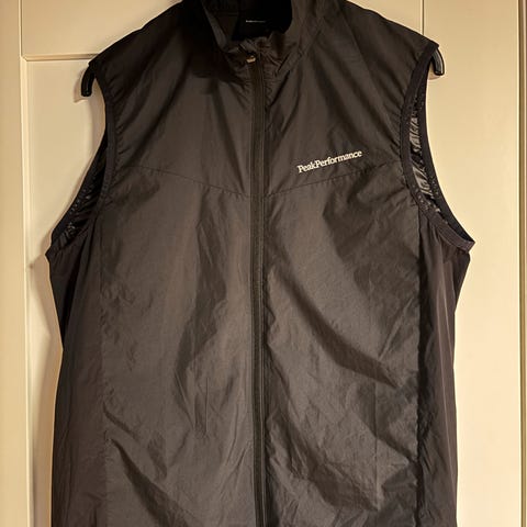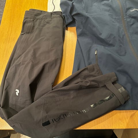 Peak Performance Gore-Tex jakke for herre i størrelse L. Jakken er blå og laget med Gore-Tex materiale som gir vann- og vindtetthet. Den har glidelås foran og logo på bryst og arm