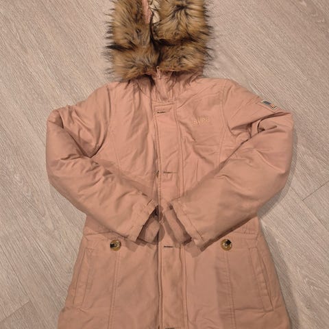Veldig pent brukt Svea jakke i størrelse XS. Ble fort for liten for vår jente, ser derfor ny ut, uten noen merker. Varm og god, og passer fint til unge jenter.