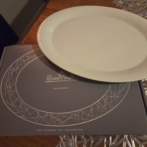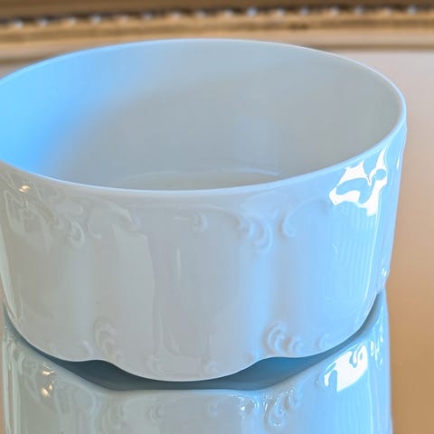 Rosenthal skål laget av hvitt porselen. Skålen har en diameter på omtrent 28 cm. Produktet leveres i original emballasje. Nypris 599kr.