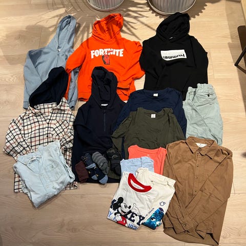 Hummel og H&M barn klær i størrelse 134/140 for gutt. Inkluderer klær som passer barn i denne alder og størrelse.