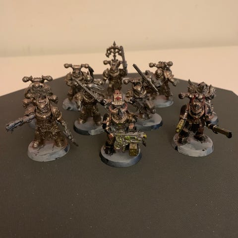 Selger min Black Legion wh40k 1500 poeng hær som er malt til god stand. Basene er magnetisert for lett oppbevaring og transport.
