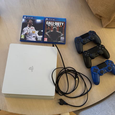 Playstation 4 inkludert en kontroll og nødvendige kabler.