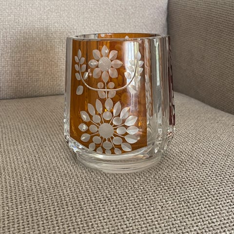 Rikt fasettert mønster med bølget kant som gir fint lysspill.