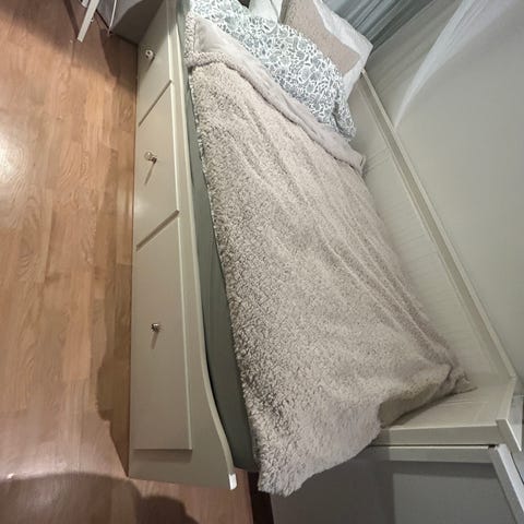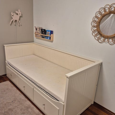 Pent brukt gjesteseng/dagseng. Mangler 2 planker. Ingen synlige skader, kun bruks slitasje.