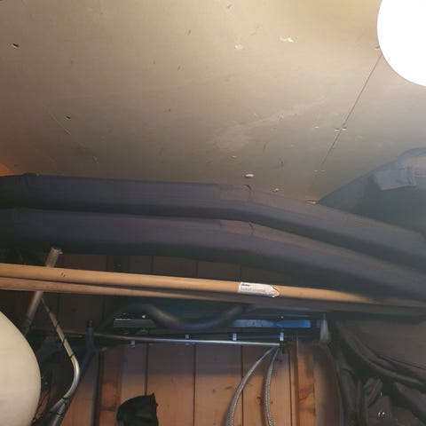 Pent brukt stand. Takboksen holder sig ikke oppe men fungerer i øvrig. 220cm lang og 55cm bred. Takstativ 123cm.