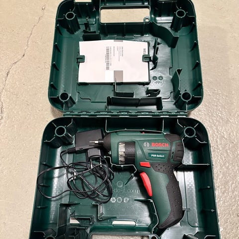 Selger en helt ny og ubrukt Bosch PSR Select (3,6V lithium-ion) med innebygd roterende bitmagasin. Esken har vært åpnet, men helt ubrukt.