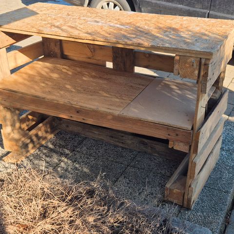 Selger et praktisk arbeidsbenk/verktøyskap fra Keter.