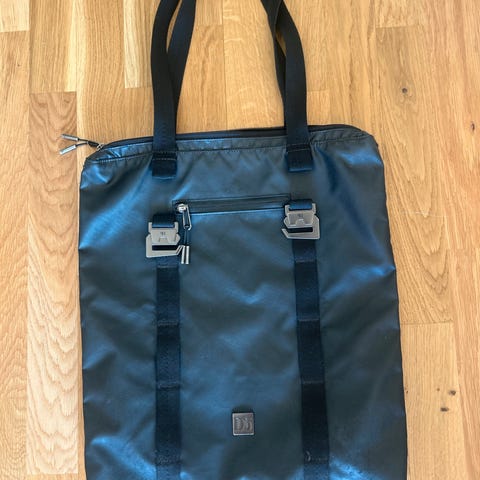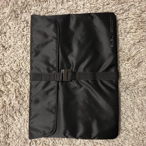DB veske laget av semsket skinn, designet for unisex bruk. Vesken har en lukking med metallspenne med DB-logo, og en kombinasjon av glatt og semsket skinn i svart.