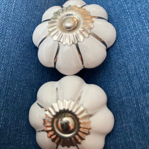 gamle skuffe/ skap knotter i porselen og metall kjerne