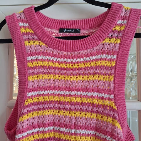 Gina Tricot kjole i hvit, størrelse XL. Kjolen har korte ermer, firkantet utringning og åpen rygg med knyting.