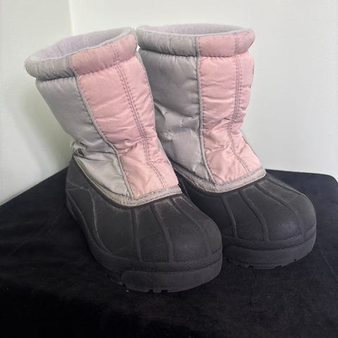Sorel barnestøvler i størrelse 29. Støvlene har slitesterk såle og isolert fôr for varme. Designet for å gi beskyttelse og komfort i kalde og våte forhold.