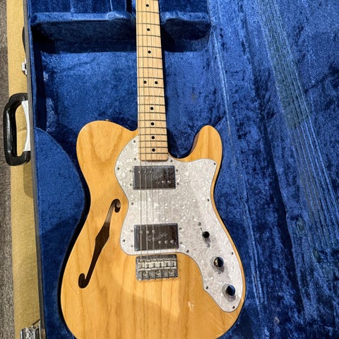Fender Telecaster Deluxe 2021 modell i vintage blond med svart pickguard.