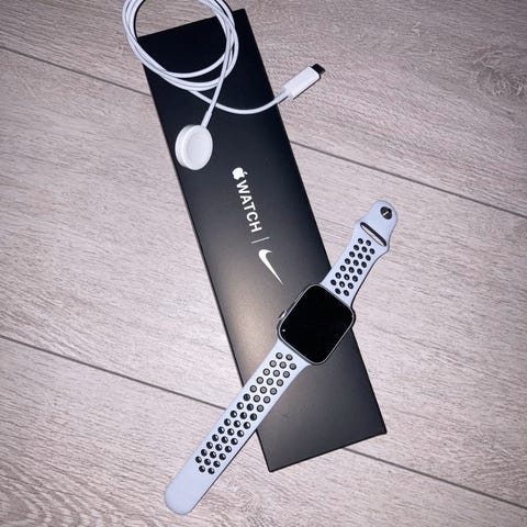 Jeg selger min applewatch fordi jeg har fått ny smartklokke. Klokken er godt brukt, men har ingen store riper eller skrammer, og er i god stand.