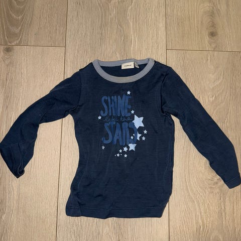 Tynn ullgenser med bomull på innsiden fra Name it selges. Grå med dinosaurer. Pent brukt. Ny pris 360 kr. Hentes i Fredrikstad eller kan sendes mot at kjøper betaler frakt.