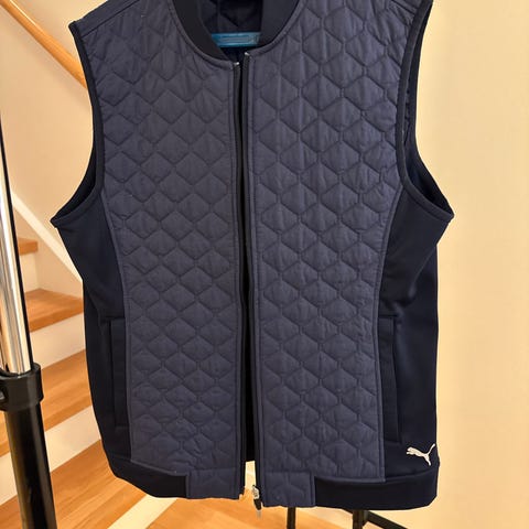 Puma sportvest i svart farge. Vesten har en quiltet front og glidelås, laget i et materiale som kombinerer komfort og funksjonalitet. Passer for både trening og fritidsbruk.