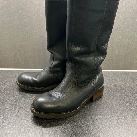 Rieker støvler i størrelse 39. Støvlene er svarte og blank krokodille aktig overflate. Er veldig lite brukt, ble litt for smale for min fot, men gode sko.