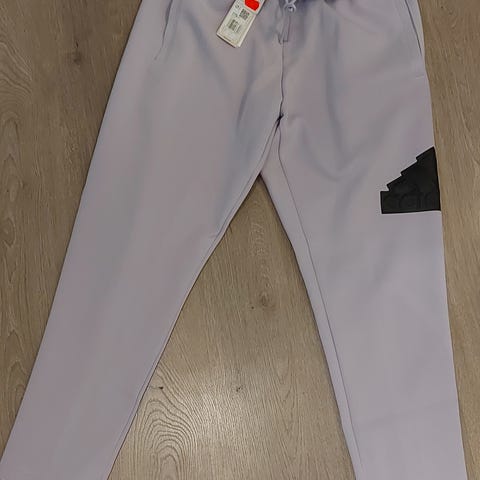 Adidas joggebukser i størrelse L for kvinner. Buksen er svart med rosa detaljer og laget av bomull. Passer til fritidsbruk og trening.