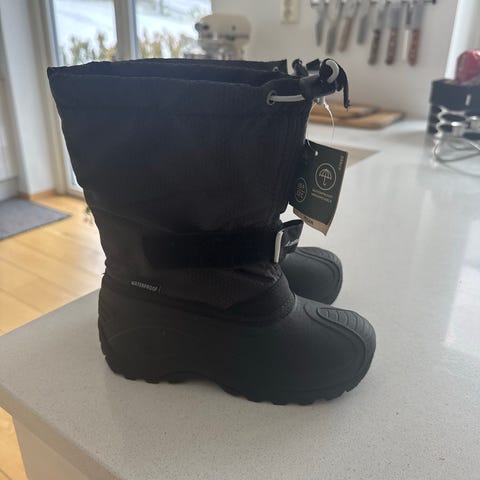 Kamik barnestøvler waterbug8G i størrelse 35 for unisex barn. Støvlene er turkise med uttakbar innersko. Produsenten reklamerer med at disse tåler kulde ned til -40 grader. Har Goretex membran, så dette er både vanntette og varme sko. Svært lite brukt, kun stått på hytta og brukt på noen få aketurer.