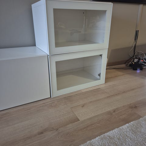 Godt brukt IKEA hylle/skapsystem gis bort mot henting. Ca 2 meter fra vegg til vegg. Ca 28,5 cm dybde. Kan deles i tre (3 moduler = 2 x 3 hyller + skap). Den er demontert fra vegg.