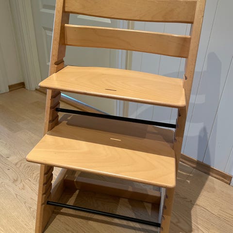 Tripp trapp stol sprøytelakkert på lakkverksted i fargen sort glans 20.Nyere modell, ikke brukt etter lakkering