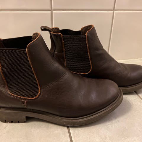 Gabor støvletter i brunt skinn, størrelse 5 (38). Støvlene har glidelås på innsiden og spenne på yttersiden. Sålen har godt mønster og er av gummi, dette gir godt grep. Jeg har aldri brukt dem, da de dessverre er for små.