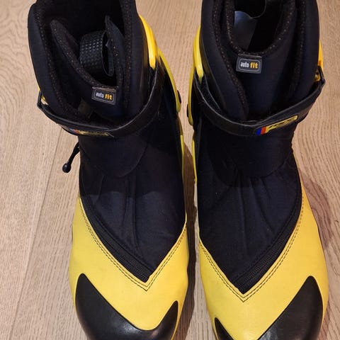 Salamon skisko selges da de ble ett nummer for store. Skoene er kun brukt et par skiturer.