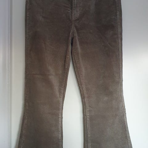 H&M Divided bukser i størrelse 46 for kvinner. Laget av grønn cordfløyel materiale. Bukser med klassisk passform og detaljer som lommer og knappelukking.