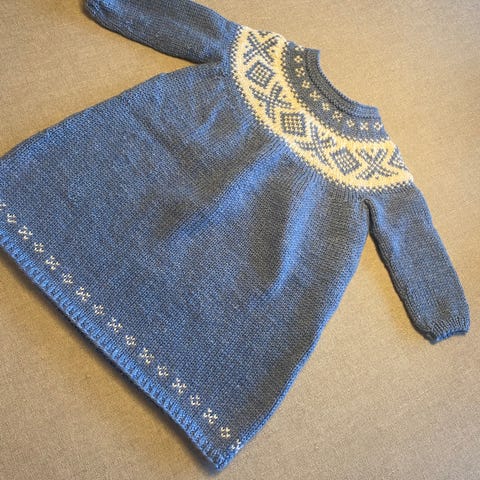 Klespakke, lillelam, hust&claire, wheat, gutt, jente, newbie, joha, strikk, genser, heldress