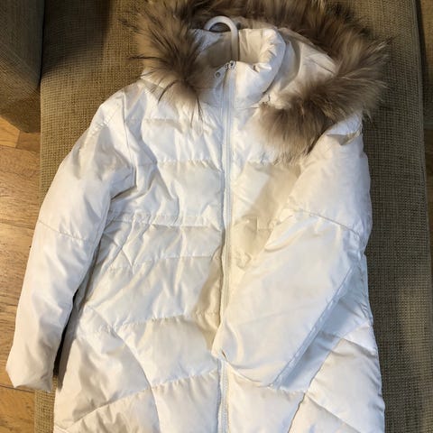 Skitten i skrittet, eller god stand. Str 170/14+. Laget av bomull og 20% polyester. Farge, gul/beige