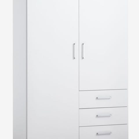 Selger et helt og pent garderobe skap. Solid skap med 3 hengsler på dører. Det er påklistret et lite speil på den ene døra.