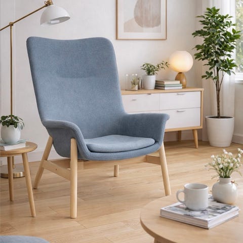 Selger en lenestol med matchende skammel i lyst grått ullstoff. Pent brukt, selges pga flytting og at vi ikke lenger har plass til den. Begge bildene er mine, men siden fotskammelen ikke var på annonsebildet la jeg inn det som eget