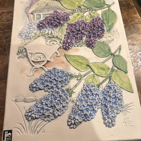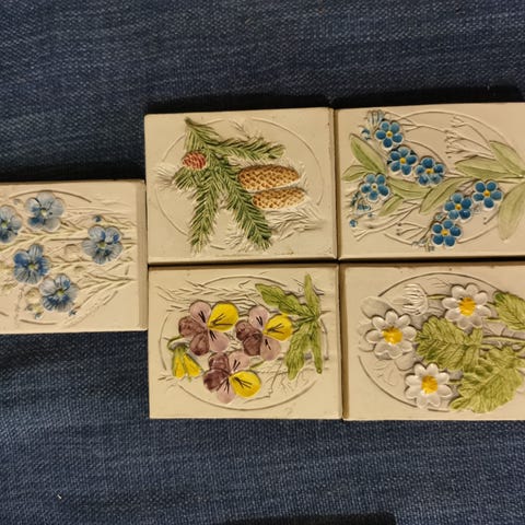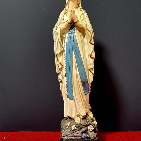 Den er 12 x 10 cm. Madonna med barn til å henge på veggen. Selges for 80kr.