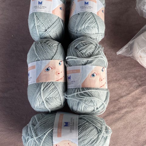 Det er 10 hele og uåpnet garnnøster, og 3 som er neste hele