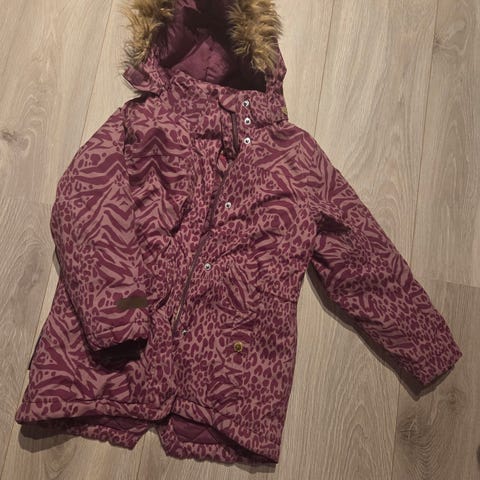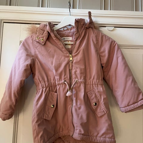Rosa parkas fra H&M i størrelse 110/116. Jakken er vattert og vannavvisende, har hette, lommer og reflekser.