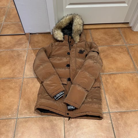 SikSilk vinterjakke i brun farge med hette. Jakken har flere lommer og detaljer på ermene. Passer for kaldt vær og har en polstret, varmende design.