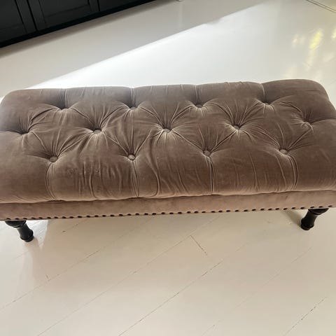 Sittepuff med oppbevaring og stoppet sete. Ramme av MDF, kryssfiner og heltre. Diameter 60, høyde 35 cm. Trekk av 100% fløyelspolyester. Martindale 25 000. Leveres montert.