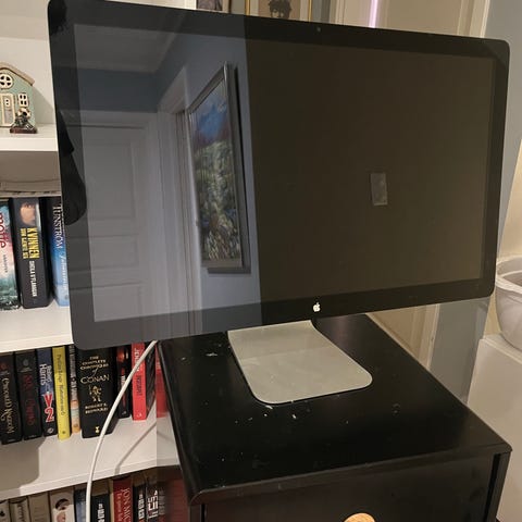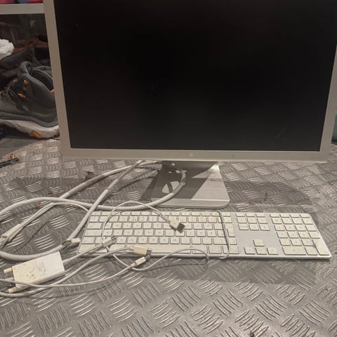 Apple 27" skjerm med 27 tommers skjermstørrelse. Passer til bruk som ekstern skjerm for datamaskiner. Følger med USB-C-multiportadapter