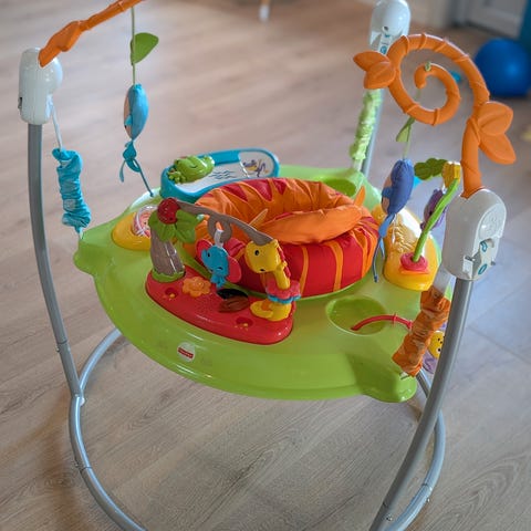 Fin fisher price jumperoo hoppehuske til barn selges til noen som har bruk for den.
