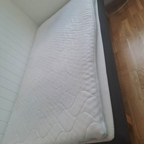 Ser ikke så pen ut, men en god seng som jo blir tildekket av laken😉