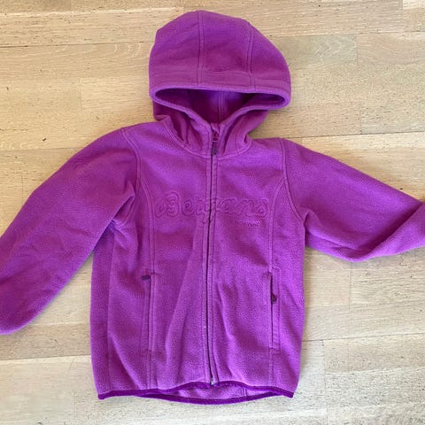 Bergans fleecejakke for barn i størrelse 116. Jakken er rosa og laget av fleece materiale. Passer for både gutter og jenter. En synlig flekk foran, se eget bilde
