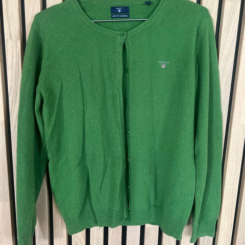 GANT Cardigan i mørk blå farge, laget av 85% ull og 15% polyamid. Str M for dame. Cardiganen har knappestolpe foran og en ribbestrikket struktur. Litt nupper.