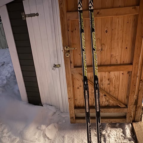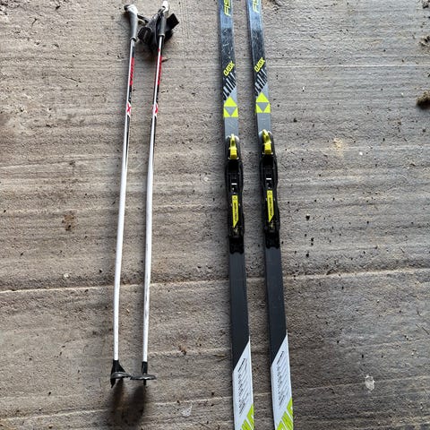 Skiene er slitt med en del riper , selges derfor billig 300kr