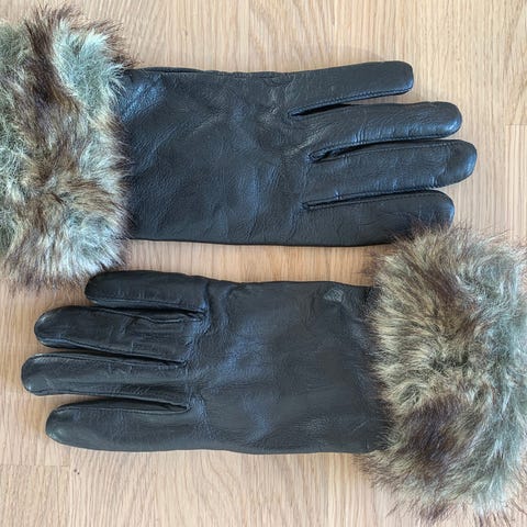 Selger et par sorte skinnhansker m/ pelskant av polyfleece.